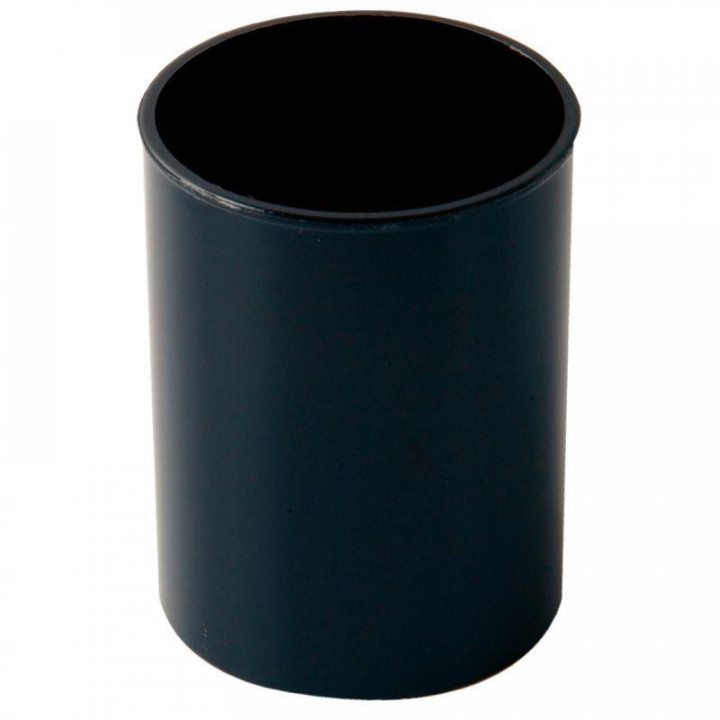 Pot à crayons en pastique noir. Diamètre 6,8 cm.