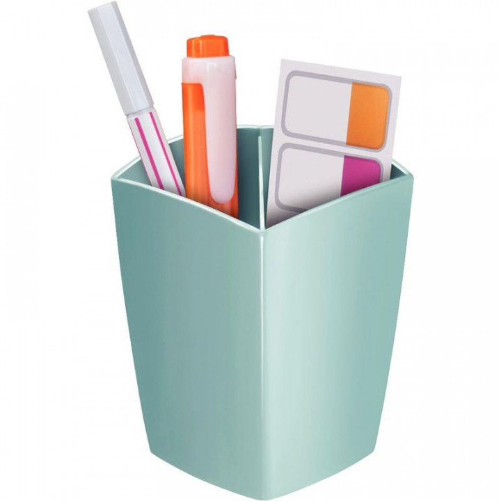 Pot à crayons RIVIERA vert d'eau. Deux compartiments afin de séparer les objets et les maintenir droits. Capacité : 32 crayons.