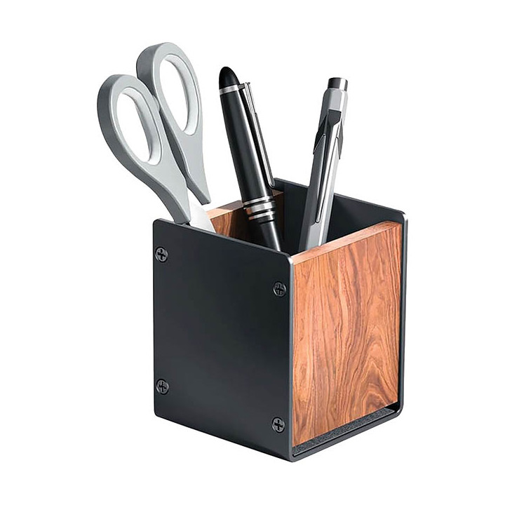 Pot à crayon aluminium et bois. Accessoire de bureau élégant offrant un espace de travail esthétique. Structure ultra-résistante. Accès facile aux crayons, stylo, ciseaux, ect...