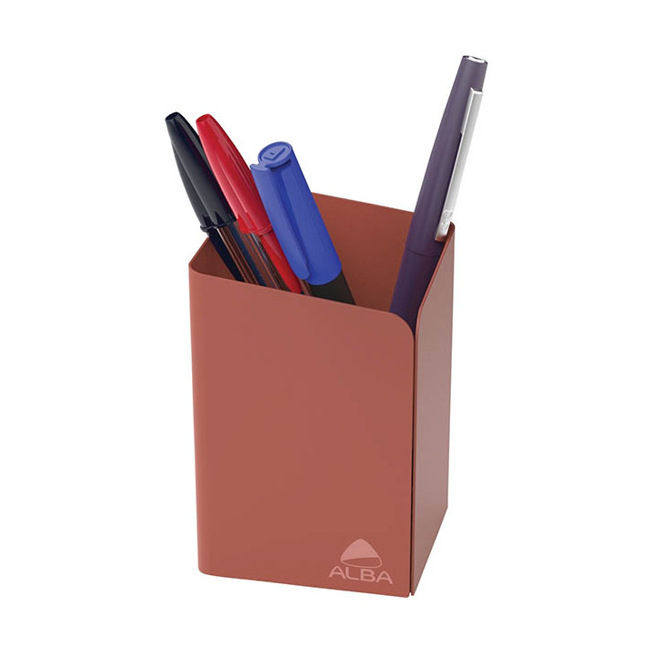 Pot crayons métal terracotta. Design moderne qui permet d'apporter une touche de style à votre bureau. Structure en métal ultra-résistante équipée de patins antidérapants. Contenant grande capacité ( 40 stylos).