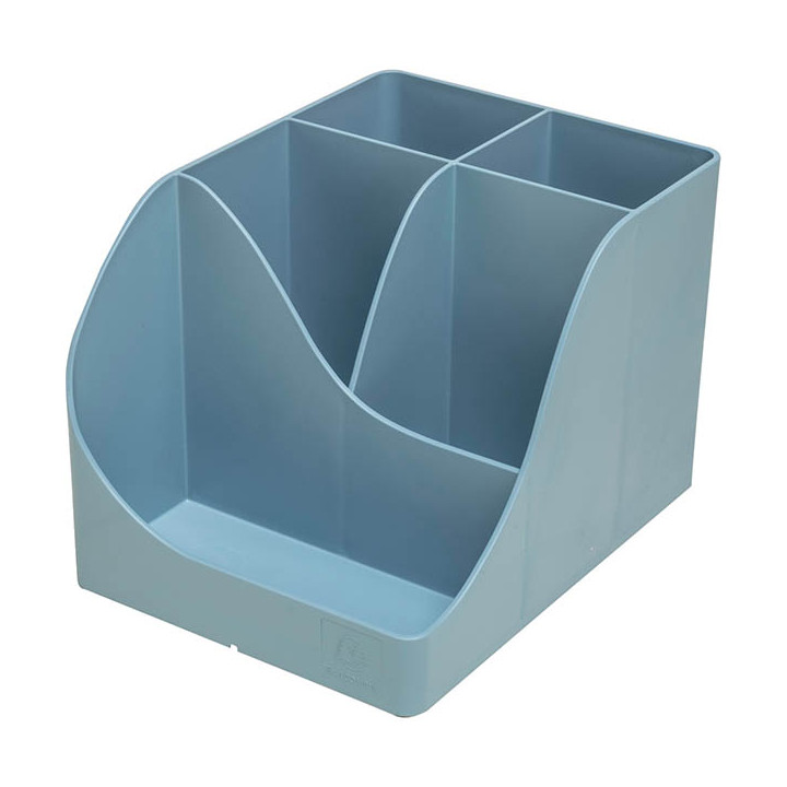 Pot à crayons PEN-WAVE AUTENTIK bleu. Pot à crayons solide et stable à grande capacité. 5 compartiments de hauteurs différentes. 4 compartiments hauts pour les grands ustensiles et un compartiment bas pour les petits objets. Fabriqué à partir de plastique recyclé. Garantie 25 ans.