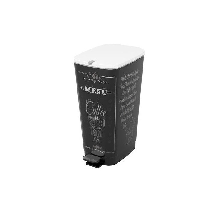 Poubelle 45 litres en plastique à couvercle basculant. Très pratique et robuste pour collecter vos déchets. Parfaite protection à lhumidité et aux produits dentretien. Patins anti-dérapants. Dim : 29 x 44,5 x 60,5 cm.