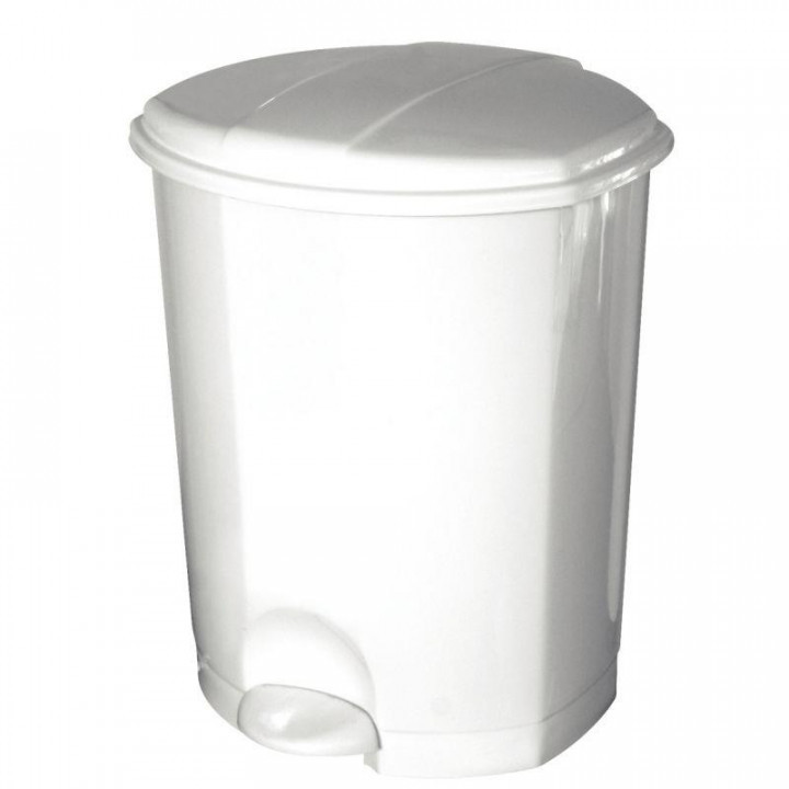 Poubelle à pédale en plastique 7L blanche. Plastique polypropylène. Seau amovible avec anse plastique.