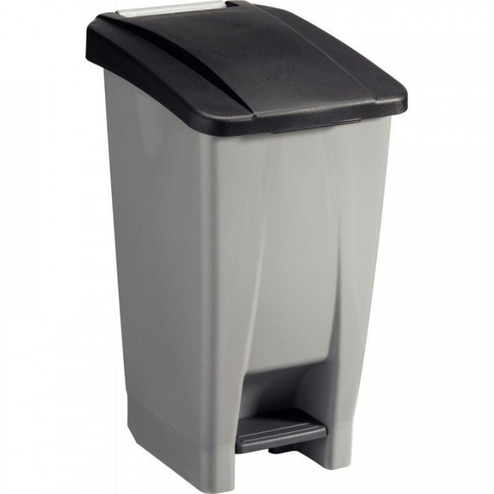 Poubelle à pédale et roulettes 60L gris/noir. Antibactérien / HACCP permettant d'être utilisé en milieu professionnel.