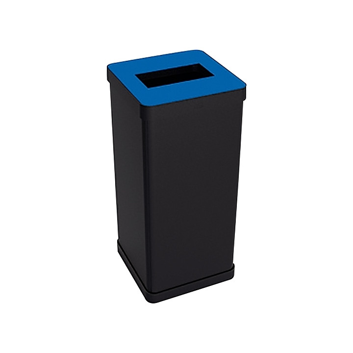 Poubelle tri sélectif 50L métal noir et bleu. Poubelle de tri avec 1 compartiment . Livré avec 3 magnets aimantés à mettre sur la poubelle selon votre choix / Papier - Plastic - Aliment) Grande capacité pouvant contenir un sac de 50L 73 cm (hauteur) Hygiénique et facile à utiliser avec son couvercle amovible Système d'accroche pour assembler les poubelles les unes aux autres