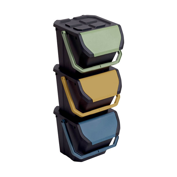POUBELLE KIT TRI SELECTIF FRIDA 24L LOT DE 3 COUVERCLES ET POIGNEES DE 3 COULEURS PAPERFLOW RECYCLABLE L38Xl38XH30,5 CM
