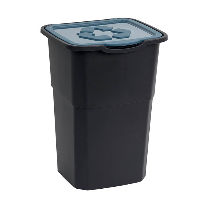 POUBELLE TRI SELECTIF 50L NOIR COUVERCLE BLEU PP RECYCLABLE PAPERFLOW L39Xl36XH54 CM