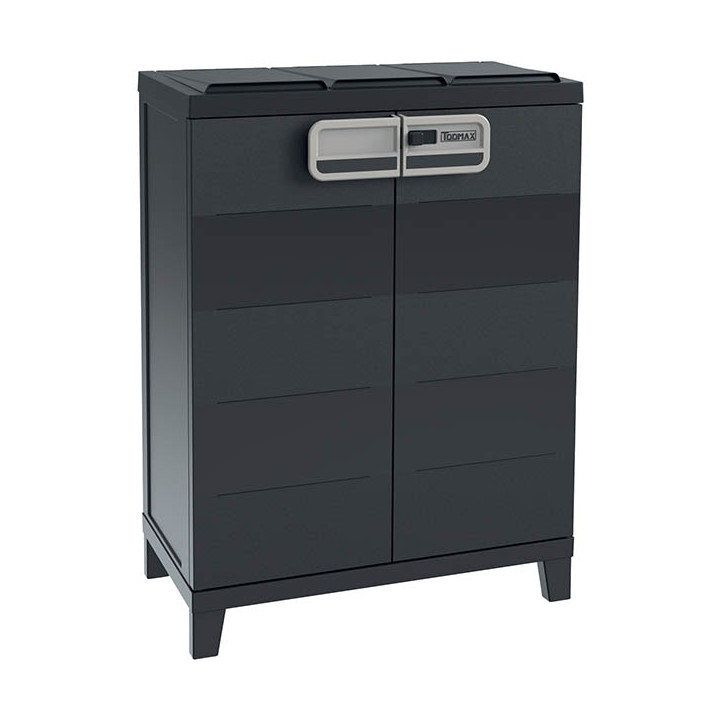Armoire de tri sélectif 40 litres x3 Smart. Armoire de tri sélectif, à portes, pour la collecte des déchets Capacité en volume : 40L x3 Matière : polypropylène Fabriquée en matériaux recyclés à partir de déchets post-industriels et post-consommation Coloris : noir Dimensions : L.66xl.40xH.88cm Livrée à plat : facile à monter et à nettoyer