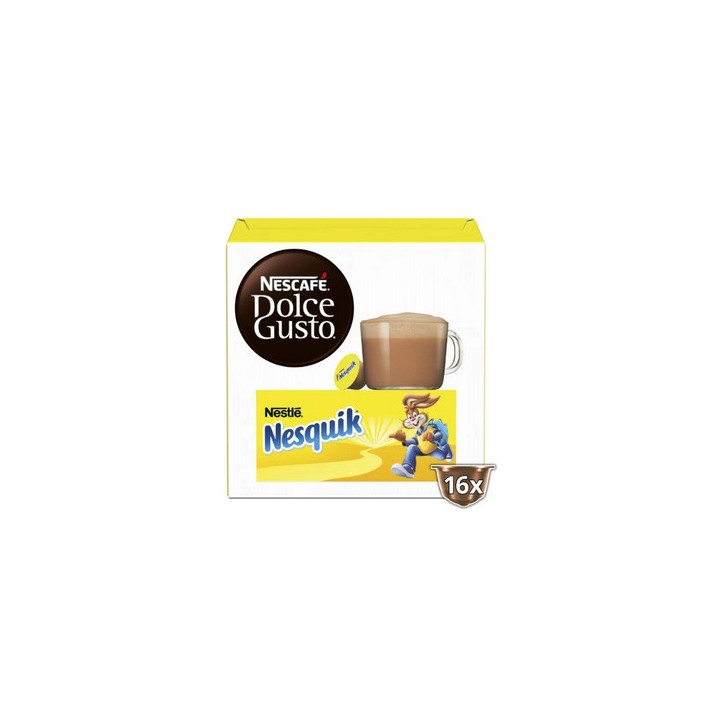 Chocolat en capsules pour machine à café Dolce Gusto. Redécouvrez le goût légendaire du NESQUIK® autrement avec notre capsule NESQUIK® NESCAFÉ® Dolce Gusto®. Introduisez simplement la capsule chocolat NESQUIK® dans la machine à café NESCAFÉ® Dolce Gusto® et ensuite dégustez votre boisson au cacao préférée. Surmontée d'une généreuse couche de crème, cette boisson chocolatée signée NESCAFÉ® Dolce Gusto® saura vous ramener directement en enfance.