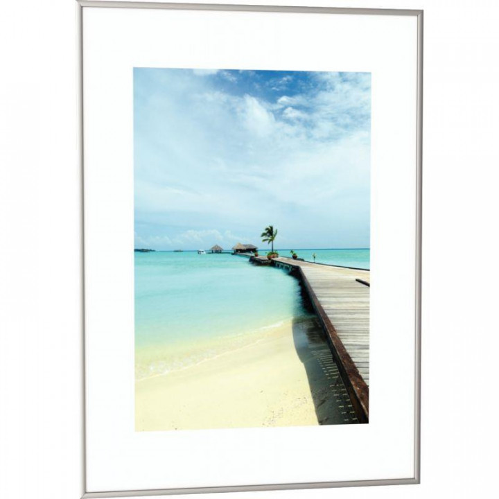 Cadre 50 x 70 cm aluminum. Cadres de décoration en aluminium Structure : profil en aluminium anodisé de 9 mm et fond rigide en médium de 3 mm. Fenêtre : plexiglas. Cadres orientables au format portrait ou paysage. Livrés montés.