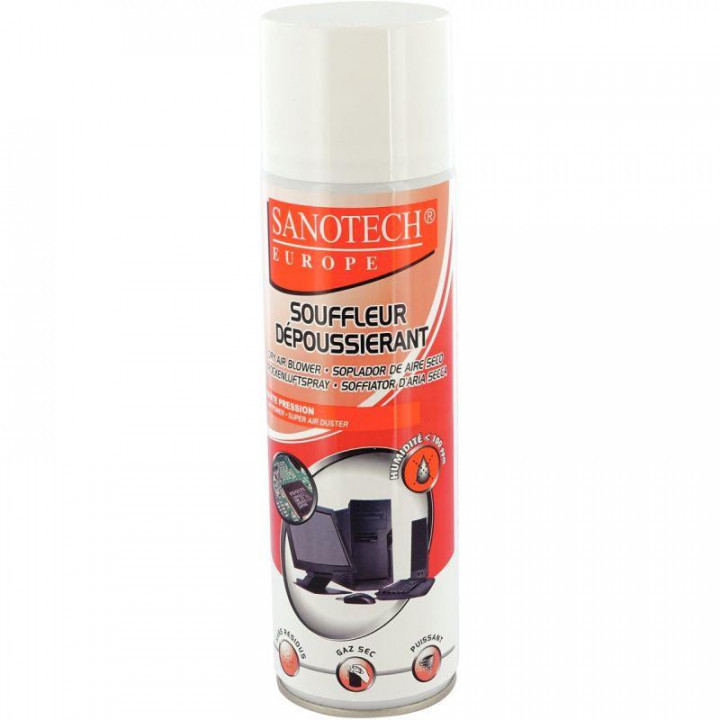 Aérosol 400g gaz dépoussiérant. Le dépoussiérant est un gaz liquéfié et sec comprimé en aérosol utilisé pour le dépoussiérage de tous matériels informatique et bureautique. Utilisable sous tension, il conserve une pression et un débit puissant constant. Il est non abrasif et ne laisse pas de résidu.