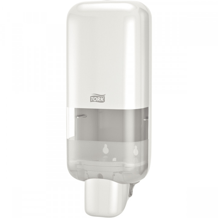 Distributeur de savon S4 blanc. Le distributeur pour savon liquide et spray Tork de la gamme Elevation est adapté aux sanitaires à trafic élevé où l’efficacité est clé et peut s’utiliser avec une grande variété de produits de soins de la peau Tork en bouteilles scellées. Les distributeurs Elevation ont un design impeccable, moderne et fonctionnel qui laisse une impression durable sur vos clients. Pour tous : Certifié Facile à utiliser par un tiers – garantit une bonne hygiène des mains accessible pour toutes les personnes, y compris les enfants et les personnes âgées. Le nettoyage sans effort certifié et les rechargements intuitifs permettent d’économiser du temps. Dimensions : L.11,8 cm x H.30.3 cm x P.12,1 cm. Bandes adhésives au dos du distributeur. Garantie : 2 ans.