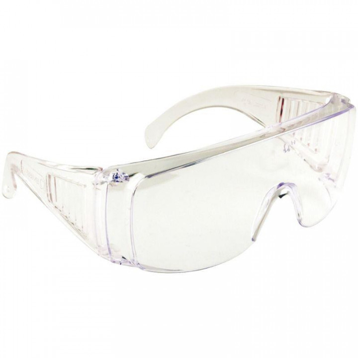Lunette de protection verres incolores VISILUX. Oculaire en polycarbonate incolore. Traitement anti-UV. 99,9 % UV-A/UV-B. Résistance aux températures extrêmes. Compatible avec le porte de lunettes correctrices. Vision panoramique. Branches auto-ajustables. protection supérieure et latérale. Normes EN166:2001 et EN170:2003.