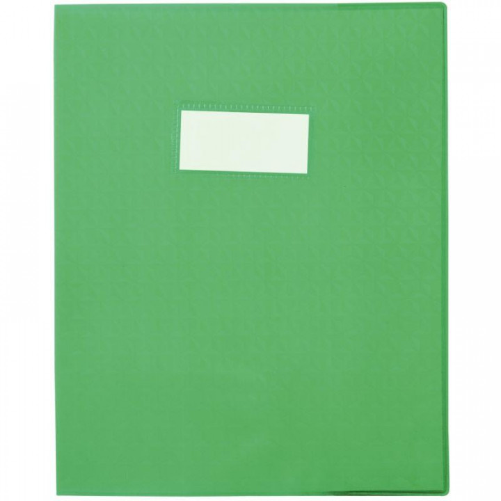 Paquet de 30 protège-cahiers grain 10/100ème format 17 x 22 cm coloris vert. Opaque sans rabat. En PVC. Avec porte-étiquette et planche de 30 étiquettes cartonnées.