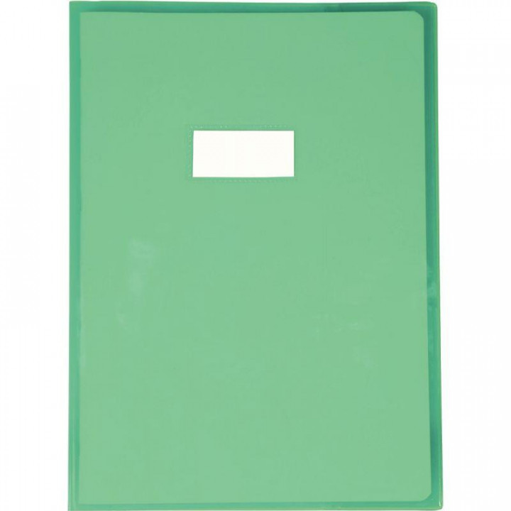 Protège-cahier cristal 21 x 29,7cm 22/100 coloris vert. Protège-cahier cristal en PVC transparent lisse. Épaisseur 22/100ème. Avec porte-étiquette.