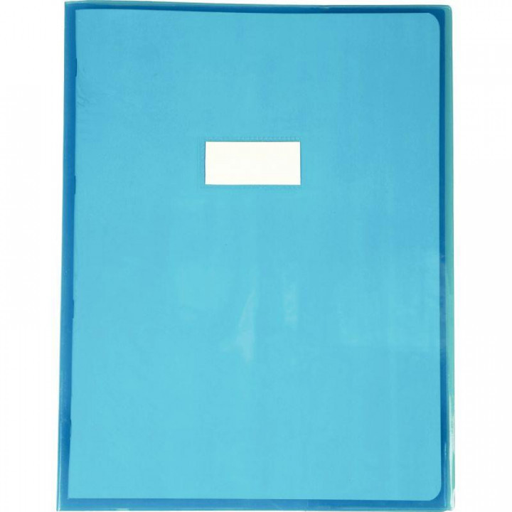 Protège-cahier cristal 24 x 32 cm 22/100 coloris bleu. Protège-cahier cristal en PVC transparent lisse. Épaisseur 22/100ème. Avec porte-étiquette.