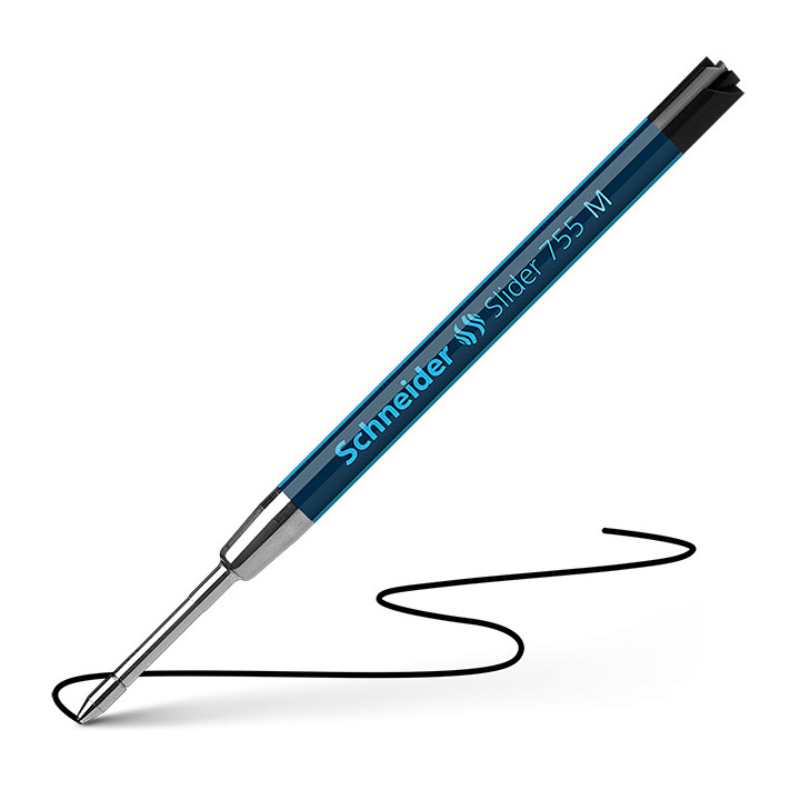 Recharge Slider 755 XB noire. Technologie Viscoglide pour une écriture légère et fluide. Pointe en acier inoxydable résistante à l'usure.