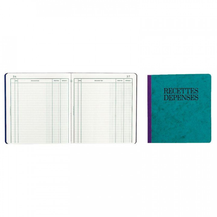 Piqûre de 80 pages recettes/dépenses format 21 x 19 cm.