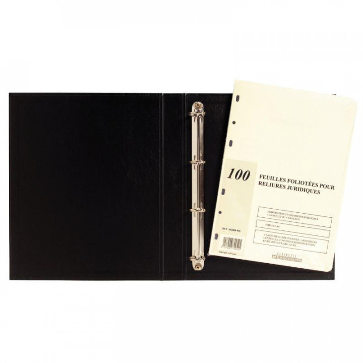Recharge 100 feuilles foliotées universelles pour reliures registres. Perforation standard 4 ou 6 anneaux.Format 21 x 29.7 cm.4 pages de garde fournies : assemblées générales, conseils d'administration,livre d'inventaire, livre ...."