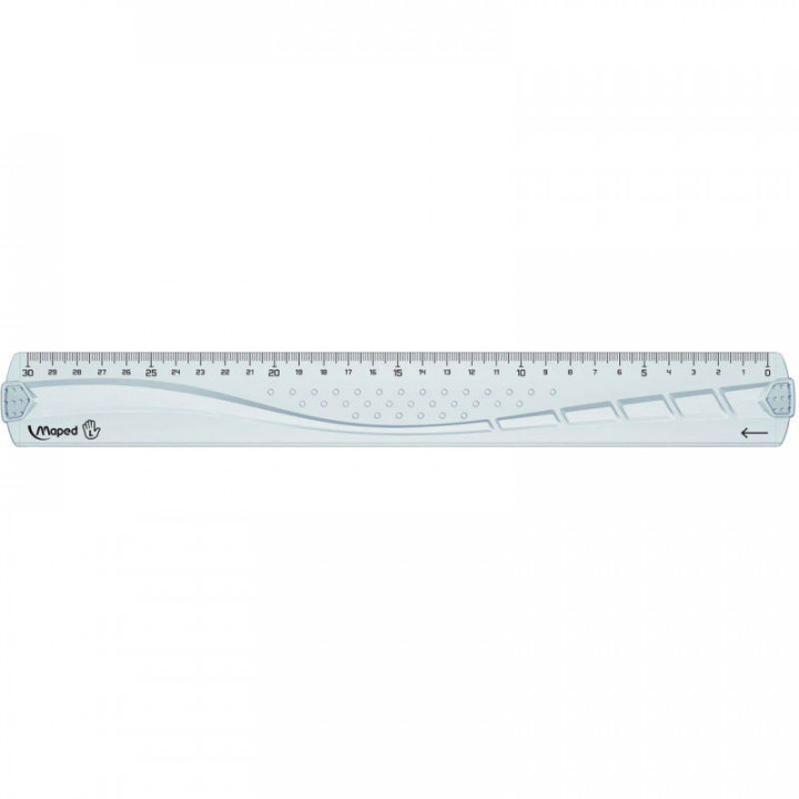Règle plate gaucher GEOMETRIC 30cm. Bord anti tâches, préhension ergonomique. Règle à base de 80% de matière recyclée.