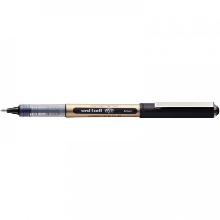 Roller Uniball Eye UB150 pointe large noir. Ecriture large, pointe 1 mm, tracé : 0,7mm. Encre liquide à pigmentation infalsifiable et inaltérable à l'eau et à la lumière. Niveau d'encre visible. Contrôle du débit de l'encre. Idéal pour les documents officiels.