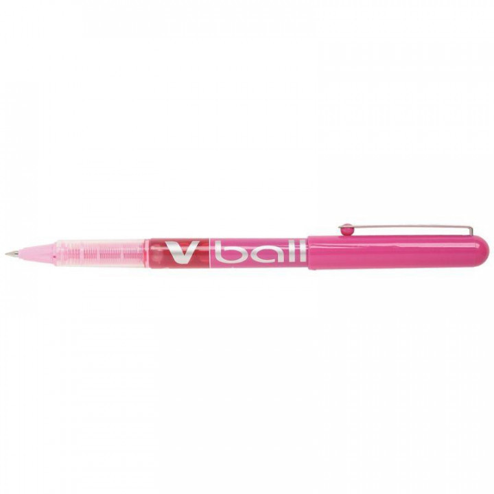 Roller V-Ball 0,5 mm rose. Roller à pointe métal, encre liquide à niveau visibleécriture 0,3 mm.
