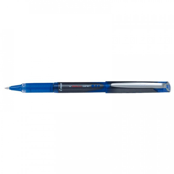 Roller V-Ball Grip 1,0mm bleu. Roller à encre liquide.Son large grip caoutchouté lui confère un grand confort d'écriture. L'endurance de sa pointe métal, associée à une bille en carbone de tangstène indéformable lui permet de parcourir des distances considérables.