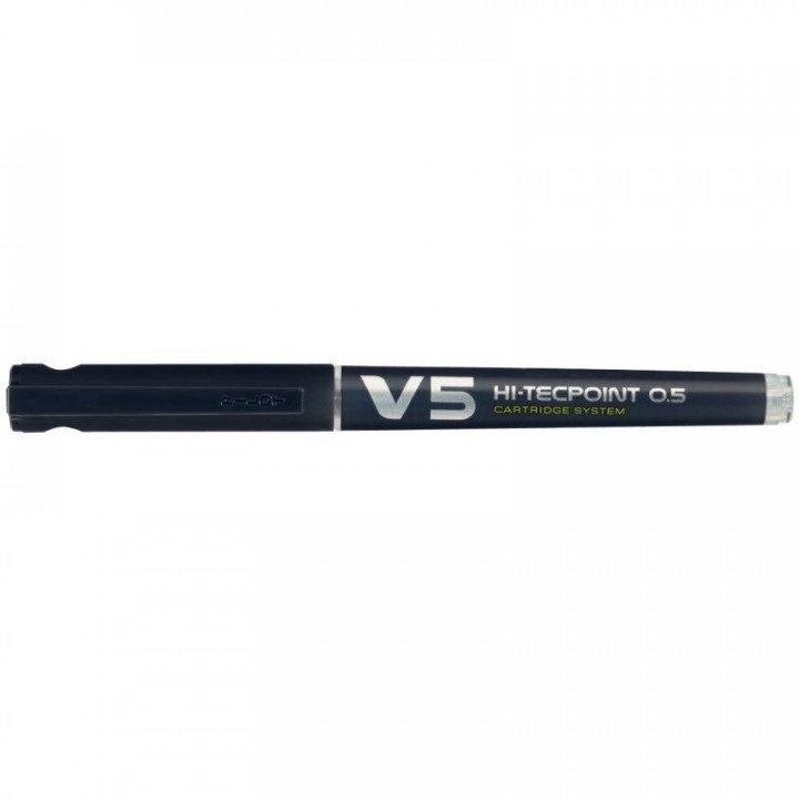 Roller V5 rechargeable noir. Encre liquide et niveau visible. Régulateur d'encre Pointe Hi-Tec sertie en 3 points. Pointe 0.5mm Tracé : 0,3mm.