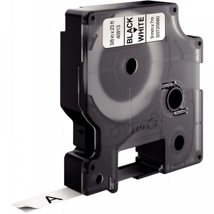 Recharge DYMO D1 9 mm x 7 m noir et blanc. Système D1 a mono-cassette pour modèles : 1000 / 1000+ / 2000 / 3500 / 4500 / 5500 / LP 100 / LP 200 / LP 300 / LM 100 / LM100+ / LM 150 / LM 200 / LM300 / LM 350 / LM400 / LM PC / Pocket.Ruban encreur et ruban support associés offrent une totale facilité d'utilisation du système. Support plastique. Les étiquettes imprimées s'utilisent toutes de la même façon. Elles adhèrent sur la plupart des surface propres et planes ( papier, plastique, métal, bois, verre ).Résistantes à l'eau, au pétrole et aux graisses de même qu'à la plupart des solvant doux.Elles résistent également aux températures situées entre - 30° et + 150°C.
