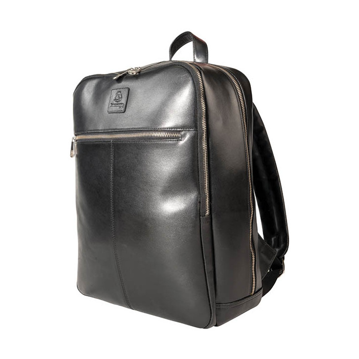 Sac à dos ordinateur Exactive en cuir Noir . En cuir vachette, résistant à l'eau comme à l'usure, il dispose de nombreux compartiments pour transporte ordinateur portable, tablette, dossiers, carnets, accessoires informatiques. L'intérieur est renfoncé pour une protection optimale. Equipé à l'avant d'une large poche fermée avec zip et dispose à l'arrière d'un passant au dos pour glisser la sacoche sur une poignée télescopique de bagage. Ses larges bandoulière en cuir assurent un vrai confort même en cas de surcharge.