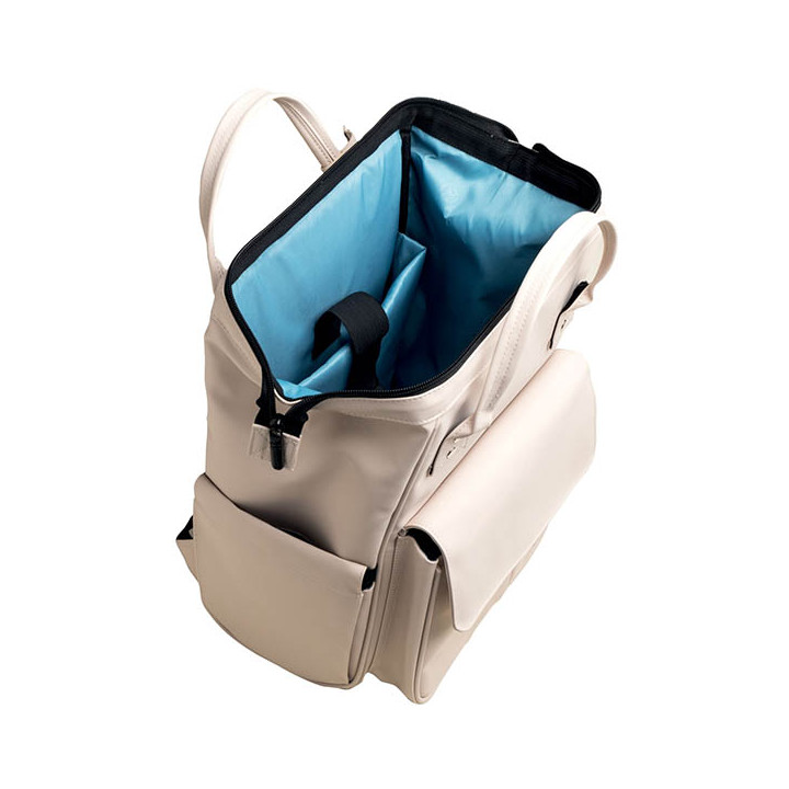 Sac à dos pour ordinateur portable EXACTIVE PU beige. Ce sac au toucher ultra doux est déperlant et offre une résistance et une durabilité optimales. Equipé d’une ouverture grand angle et de nombreuses poches. A l’intérieur du sac une poche matelassée séparée pour protéger un ordinateur de 15 pouces. Compartiment latéral pour ranger une gourde et une petite poche zippée pour les documents ou petits accessoires. Extérieur, 2 poches latérale plastifiées pour ranger un parapluie sans mouiller le contenu du sac. Une poche avant pour accéder rapidement à un téléphone ou des clés et une petite poche zippée à l’arrière pour sécuriser portefeuille ou titre de transport. Un passant au dos permet de glisser le sac à dos le long d’une poignée télescopique de valise