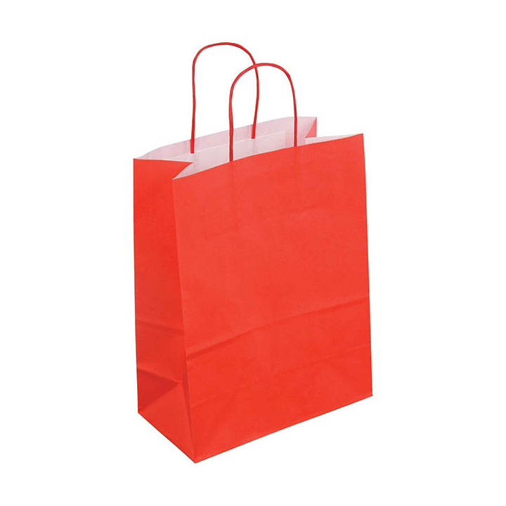 Paquet de 50 sacs Kraft rouge 35+14x40 poignées torsadées.