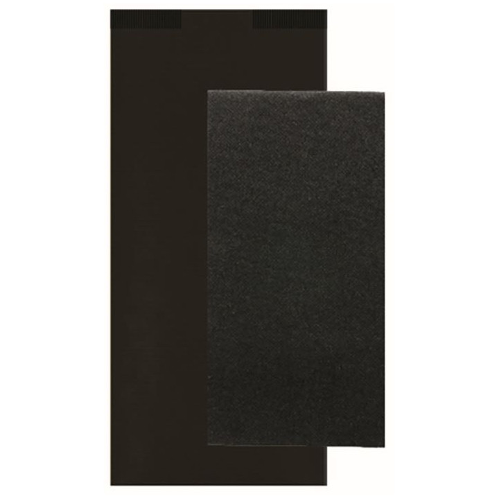 Sachets pour couverts avec une serviette en papier Ouate double point noire de 40x32cm pliée en 1/8.