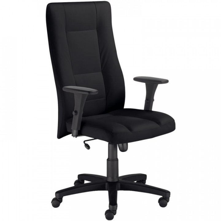 Fauteuil Invitus simili cuir noir. Mécanisme basculant centré. Réglage en intensité en fonction du poids de l'utilisateur. Dossier blocable 1 position. Réglage de l'assise en hauteur. Assise et dossier rembourrés. Densité mousse (assise / dossier) : 30 kg/m3 / 30 kg/m3. Structure interne de l'assise et du dossier en hêtre multipli. Accoudoirs réglables 1D (hauteur) en polyuréthane. Piétement en polyamide, roulettes autofreinées pour sol moquette. Garantie 5 ans.
