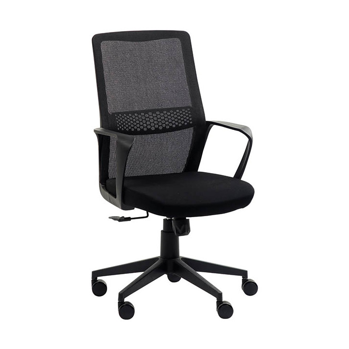 Siège dactylo Asti noir. Mécanisme basculant centré, blocable 1 position. Réglage manuel de la tension de bascule. Assise très haute densité de mousse. Dim: L48xP50cm. Norme BIFMA X5.1. Pour utilisateur jusqu'à 90kg. Garantie 3 ans.