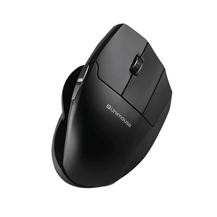 Souris Unimouse gaucher sans fil. UNIMOUSE, une souris verticale et ergonomique qui s’adapte parfaitement à toutes les mains. L’inclinaison et le support pouce sont réglables dans toutes les positions pour un confort de tous les instants. Existe en version gaucher et droitier, connectable en Bluetooth ou via dongle ou câble. Garantie 2ans Compatible Mac/PC. 10 niveaux de DPI allant de 800 à 4000 DPI. Batterie rechargeable de longue durée.