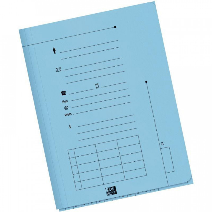 Paquet de 25 chemises HV pour dossiers suspendus, bleu. Chemises à 2 rabats conçues pour les dossiers suspendus, accès vertical et latéral. Impression pour identification. Carte recyclée et recyclable 240g. Capacité 200 feuilles. Format 23,5 x 31,5 cm pour documents A4.
