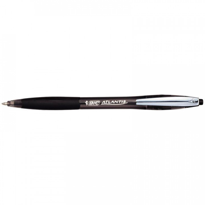 Stylo Atlantis Soft noir. Corps translucide à la couleur de l'encre. Grip caoutchouc. Clip métal. Encre Easy Glide
