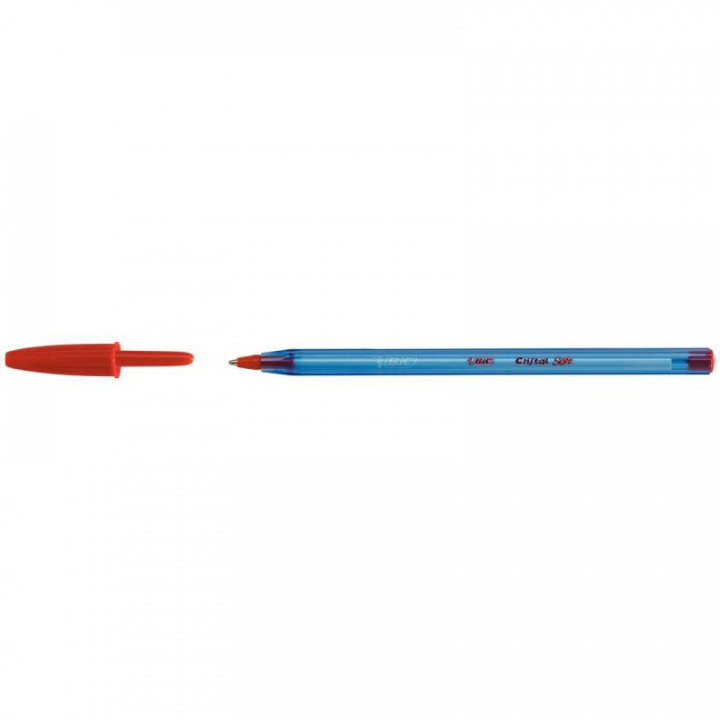 Stylo bille Cristal Soft rouge. Pointe moyenne 1,2 mm. Système d'encre Easy Glide = 35% de douceur d'écriture en plus.Corps transparent.