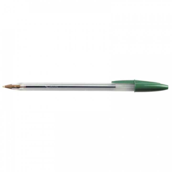Stylo bille Cristal pointe moyenne vert. Corps cristal transparent, capuchon ventilé et clip à la couleur de l'encre.