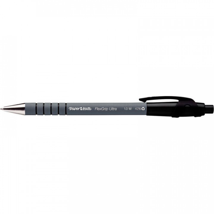 Stylo bille Flexgrip Ultra noir. Pointe 1mm, tracé 0,7mm. Technologie "floating ball" pour une meilleure fluidité. Rétractable.