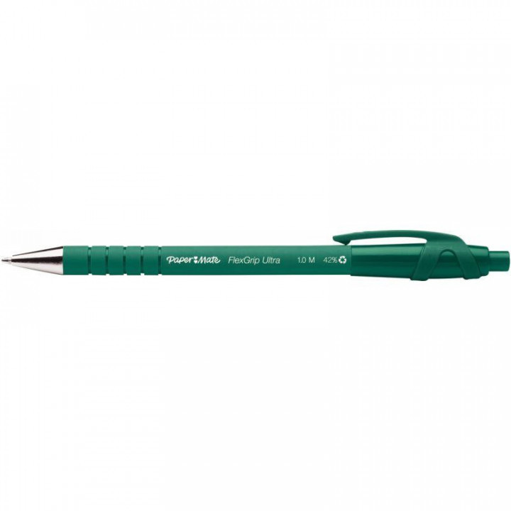 Stylo bille Flexgrip Ultra vert. Pointe 1mm, tracé 0,7mm. Technologie "floating ball" pour une meilleure fluidité. Rétractable.