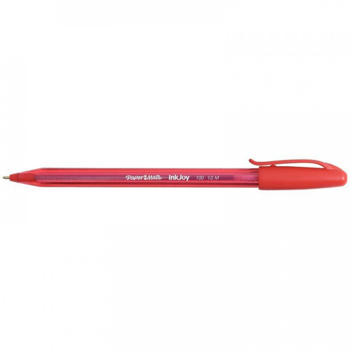 Stylo bille InkJoy100 pointe moyenne rouge. Avec capuchon. Encre très faible viscosité. Corps du stylo triangulaire à la couleur de l'encre.