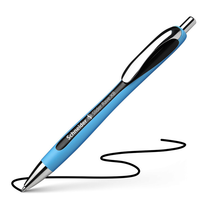Stylo bille Slider Rave noir. Technologie Viscoglide. Corps caoutchouté de forme ergonomique. Trait 1.4mm