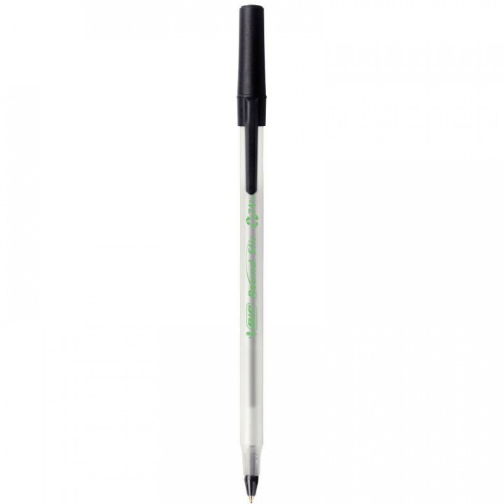 Stylo bille Round Stic noir. Écriture moyenne 1mm. Tracé 0,4mm. Corps avec un plastique recyclé.