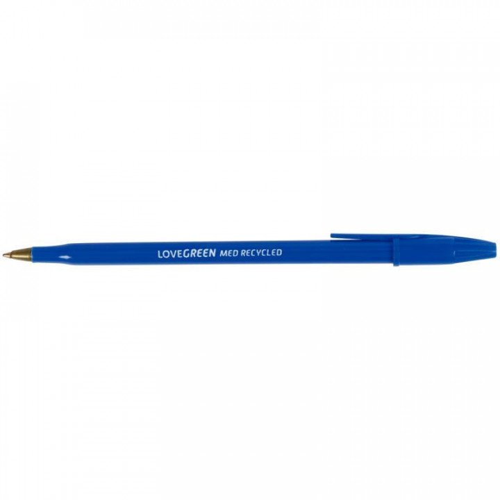 Stylo bille Lovegreen pointe moyenne bleu. Ecriture moyenne, pointe 1mm, tracé 0,7mm. 86% recyclé.