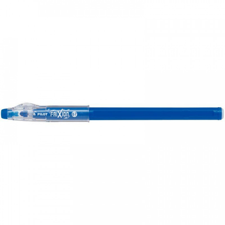 Roller frixion ball stick bleu. Pointe moyenne de 0,7 mm, tracé 0,4 mm.