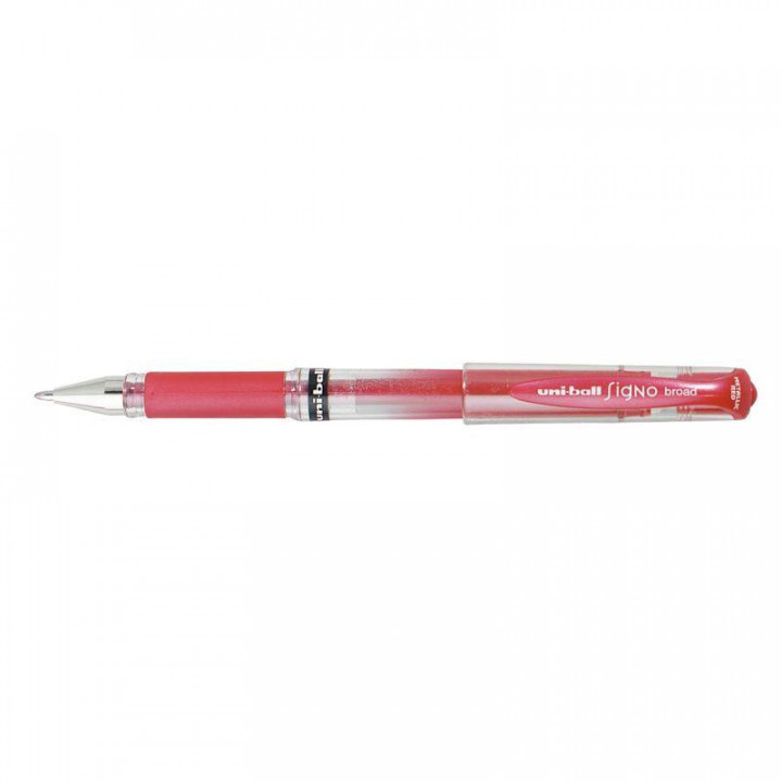 Roller Signo Broad rouge métal. Stylo à encre gel à pigmentation dense et lumineuse, écriture fluide et ultra douce, Grip en caoutchouc pour une prise en main confortable.largeur du trait : 1 mm.
