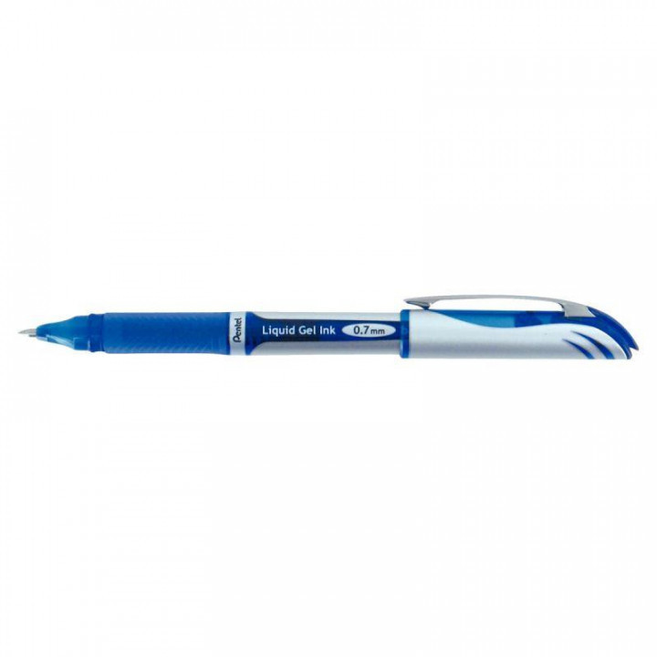 Stylo gel Energel BL57 bleu. Grip caoutchouc strié pour plus de confort.Clip chromé.Ecriture large : pointe métal 0,7mm.