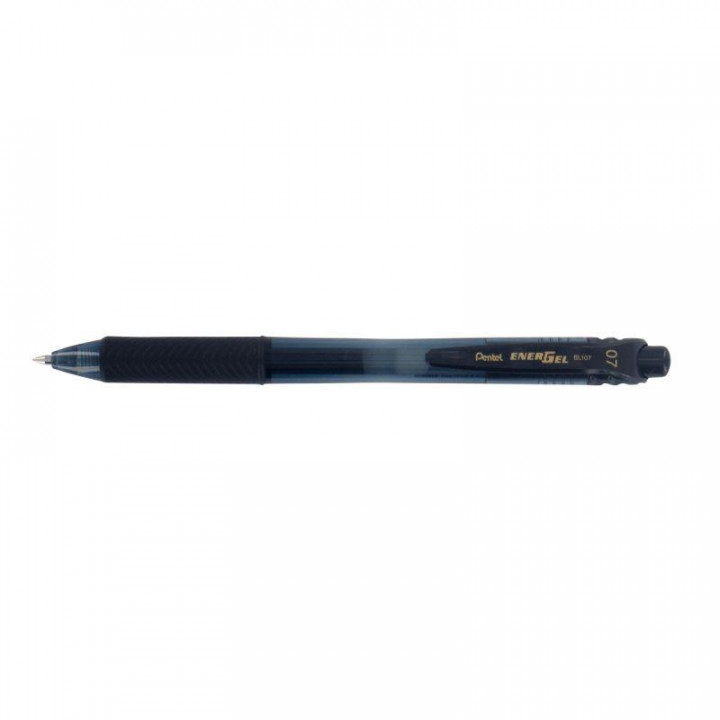 Stylo gel Energel BL107 noir. Séchage rapide sur le support, corps et attributs à la couleur de l'encre. Grip caoutchouc confort. Rétractable et rechargeable.
